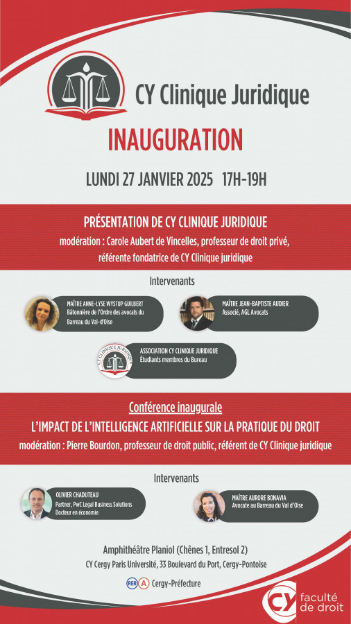 Depuis plus de 25 ans, la faculté de droit de CY Cergy Paris Université développe des formations réputées pour leur qualité et leur originalité grâce à un solide corps enseignant (professeurs, maîtres de conférences, professeurs français et étrangers associés, professionnels du droit). Elle accueille près de 3000 étudiants, répartis en Licence, Master et Doctorat, et leur offre un réel encadrement et un accompagnement tout au long de leurs études et jusqu’à leur insertion professionnelle.