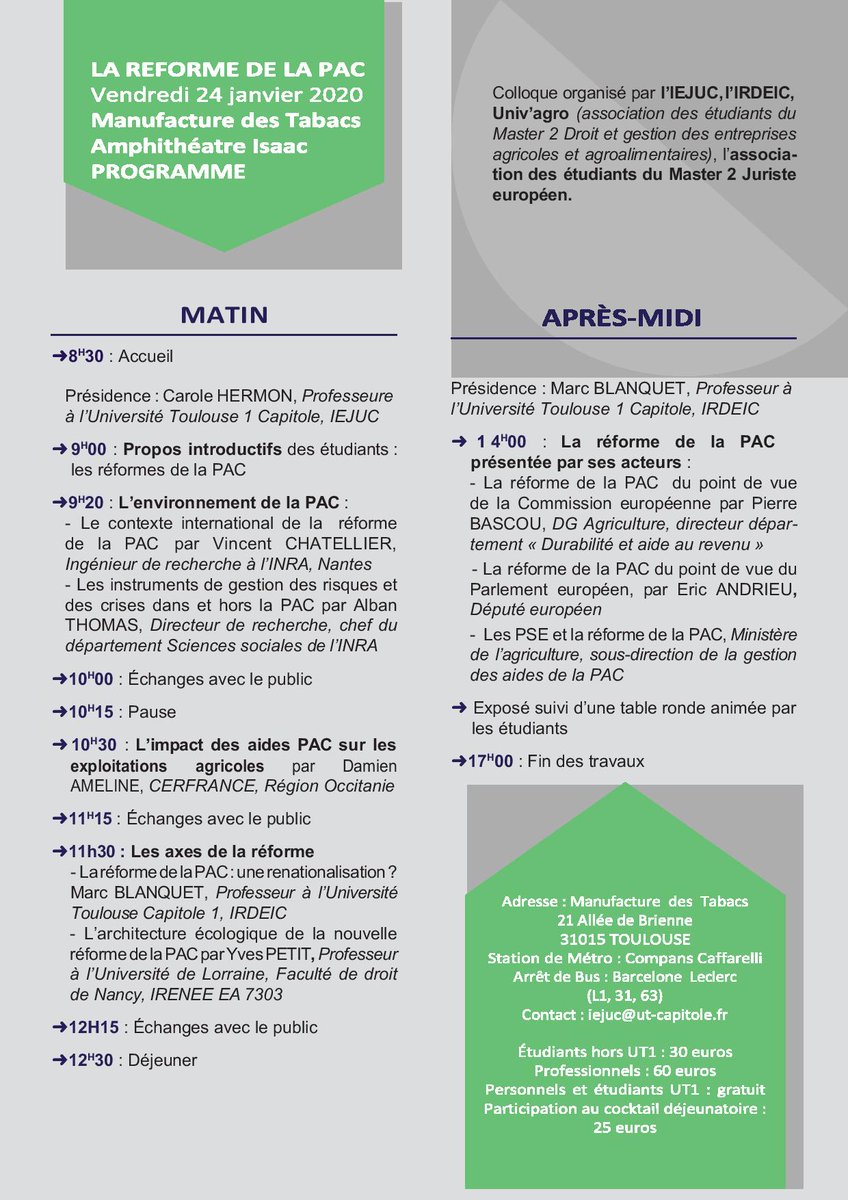 Organisé par l’IEJUCJ, l’IRDEIC, Univ’agro (association des étudiants du Master 2 Droit et gestion des entreprises agricoles et agroalimentaires) et l’association des étudiants du Master 2 Juriste européen.