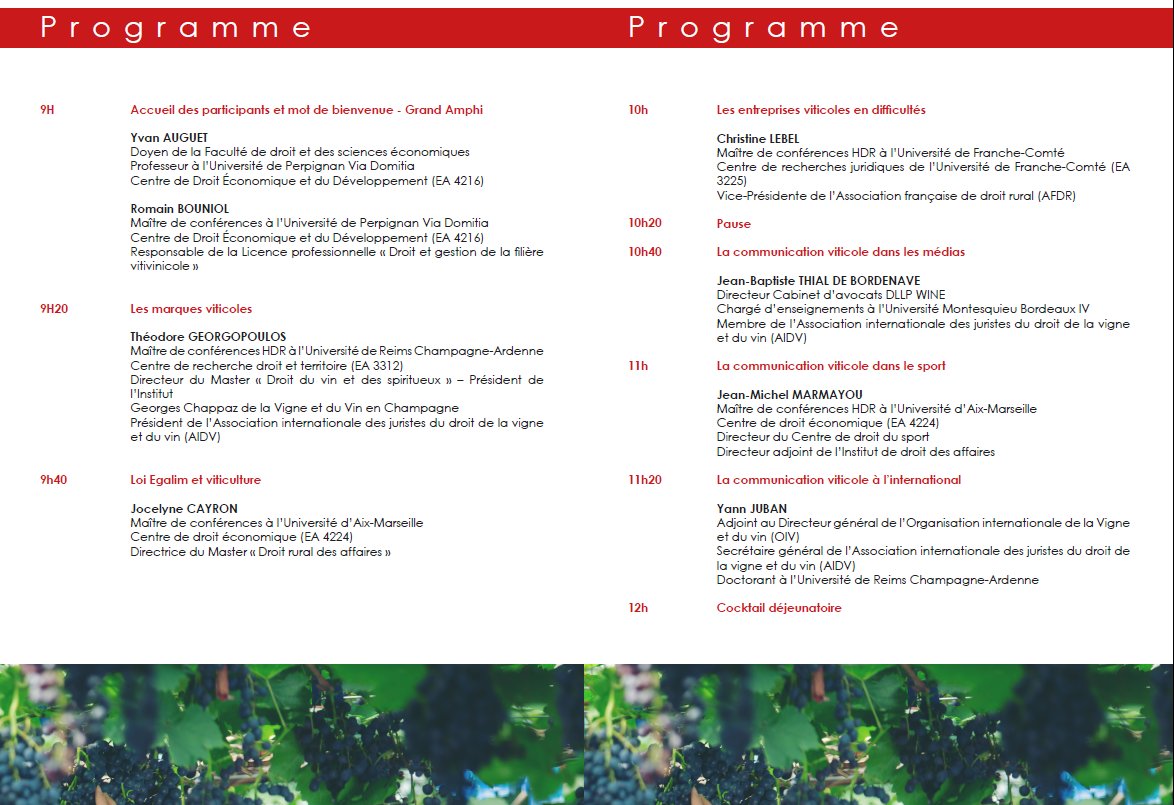 Théodore Georgopoulos, Maître de conférences HDR à l’Université de Reims Champagne-Ardenne Centre de recherche droit et territoire (EA 3312), Directeur du Master « Droit du vin et des spiritueux », Président de l'institut Georges Chappaz de la Vigne et du Vin en Champagne, Président de l'Association internationale des juristes du droit de la vigne et du vin (AIDV)