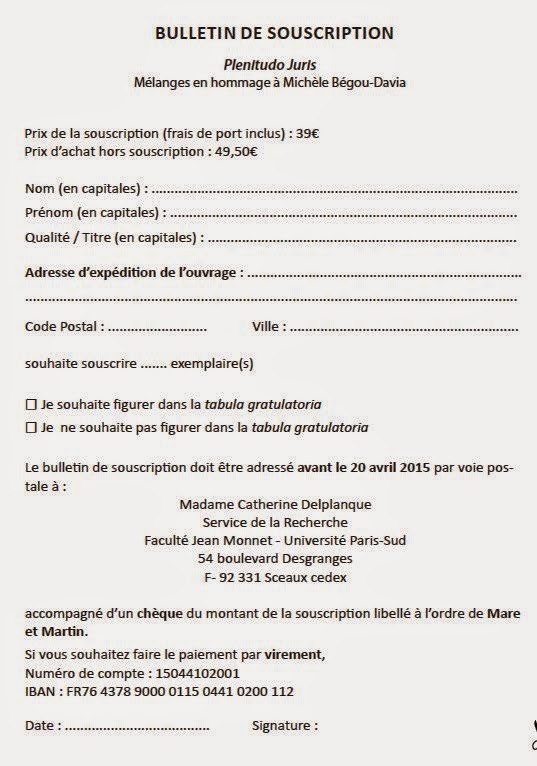 Le bulletin de souscription doit être adressé avant le 20 avril 2015 par voie postale à: