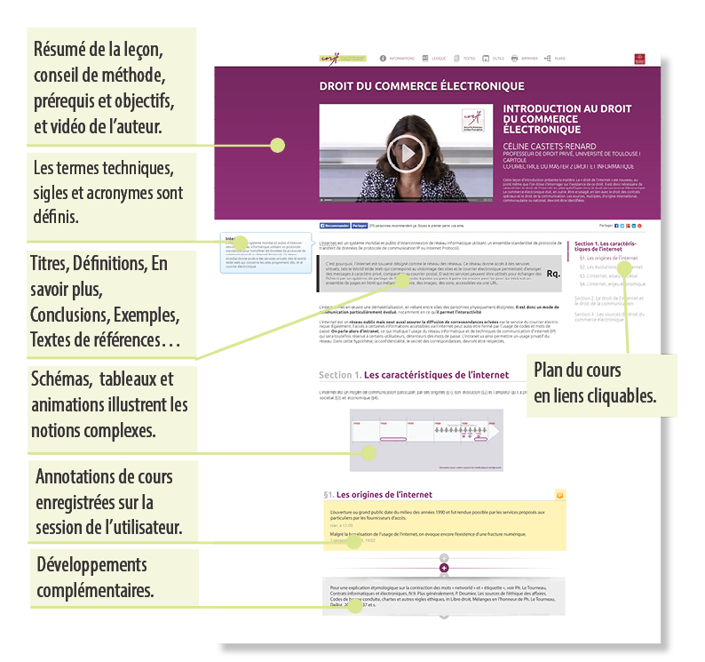 - d'exercices d'application interactifs : questions de cours, "quiz" commentés, cas pratiques, corrigés de dissertation ou de commentaire, dans un but d'auto-apprentissage ou d'auto-évaluation.