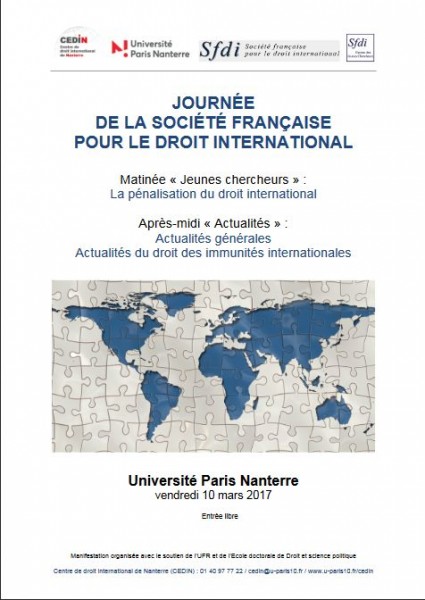 Journée de la société française pour le droit international organisée avec le soutien de l’UFR et de l’Ecole doctorale de Droit et science politique
