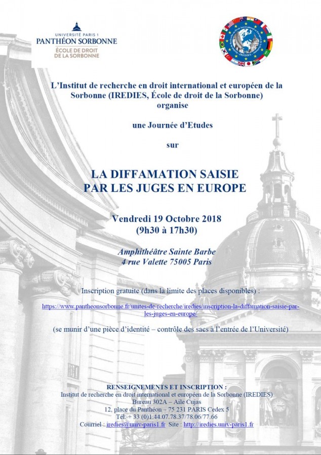Journée organisée par l’Institut de recherche en droit international et européen de la Sorbonne (IREDIES, École de droit de la Sorbonne)