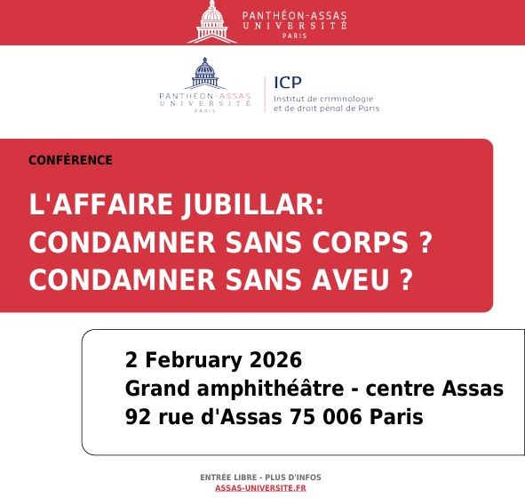 Conférence organisée par l’Institut de criminologie et de droit pénal de Paris, Université Paris Panthéon-Assas