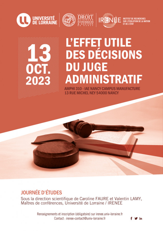 Organisé par le laboratoire IRENEE, Université de Lorraine sous la direction de Mélanie Dubuy, MCF HDR de droit public et Jochen Sohnle, Professeur de droit public IRENEE / UL