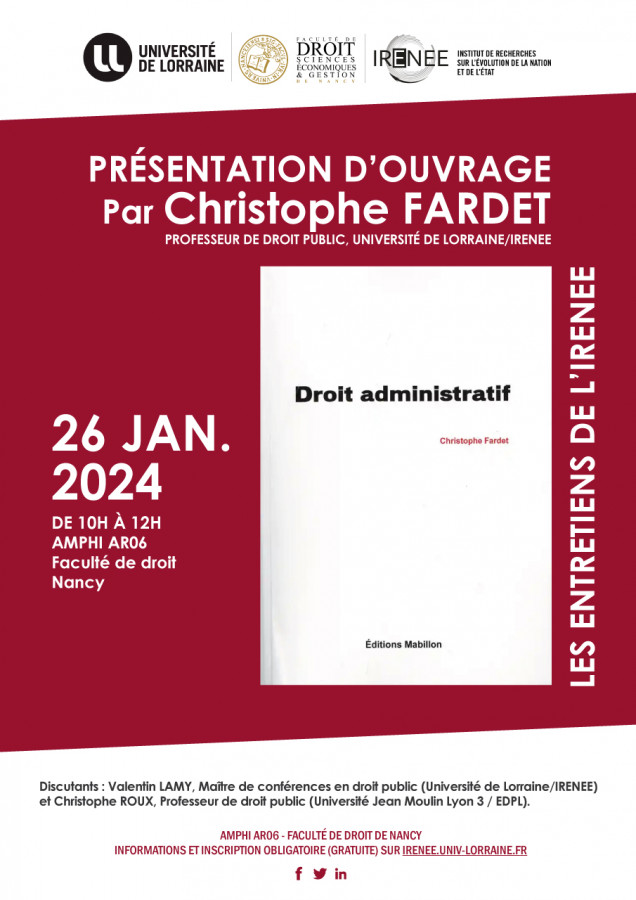 Christophe Fardet, Valentin Lamy, Christophe Roux, Discussion suite à la présentation du livre de C. Fardet, Droit administratif, éd. Mabillon, 2023, 2024