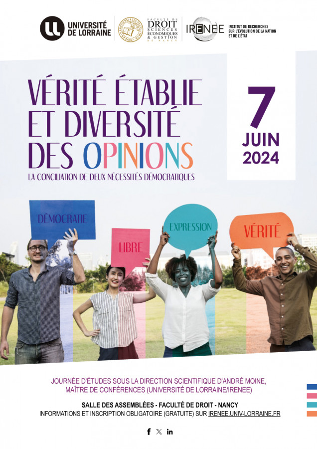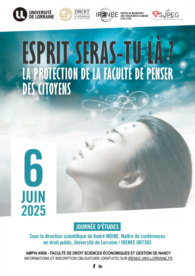 Organisé par l’IRENEE, Université de Lorraine sous la direction de André Moine, Marie Rota, MCF de droit public IRENEE / UL et Christophe Bouriau, Professeur de philosophie Archives Poincaré / UL