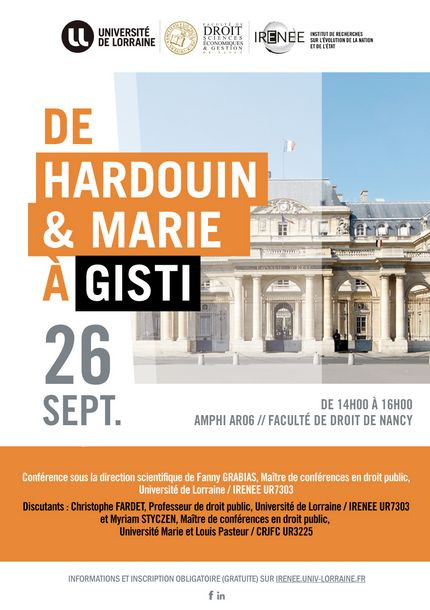 Organisée sous la direction scientifique de Fanny Grabias, Maître de conférences en droit public - Université de Lille / Membre associée de l'IRENEE et Bruno Py, Professeur de droit privé et sciences criminelles - Université de Lorraine / IFG