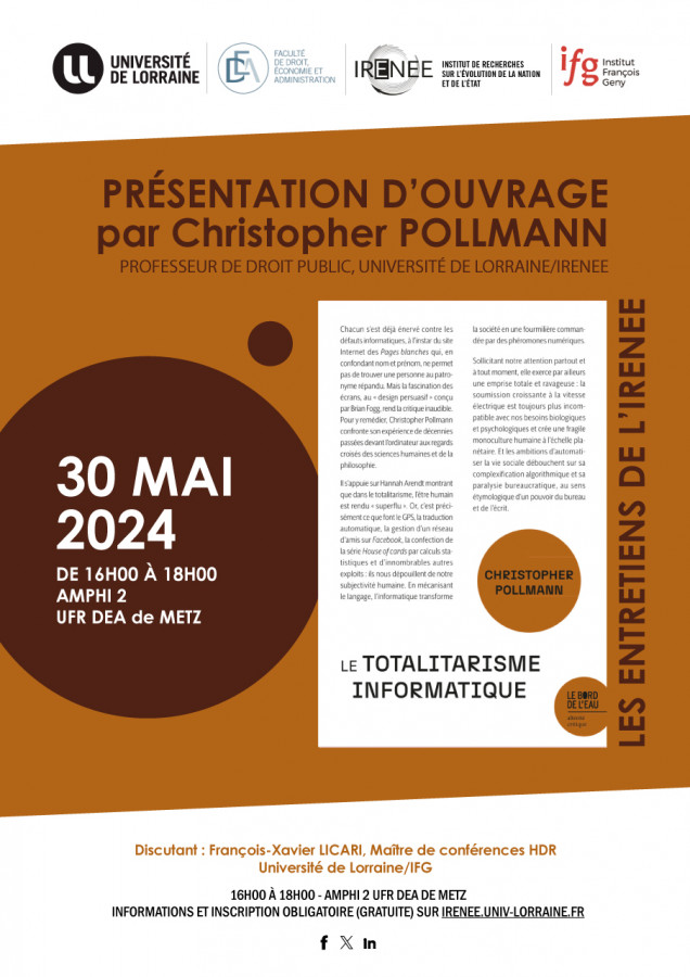 François-Xavier Licari, Christopher Pollmann, Discussion suite à la présentation du livre de C. Pollmann, Le totalitarisme informatique, éditions Le Bord de l'eau, 2024, 2024