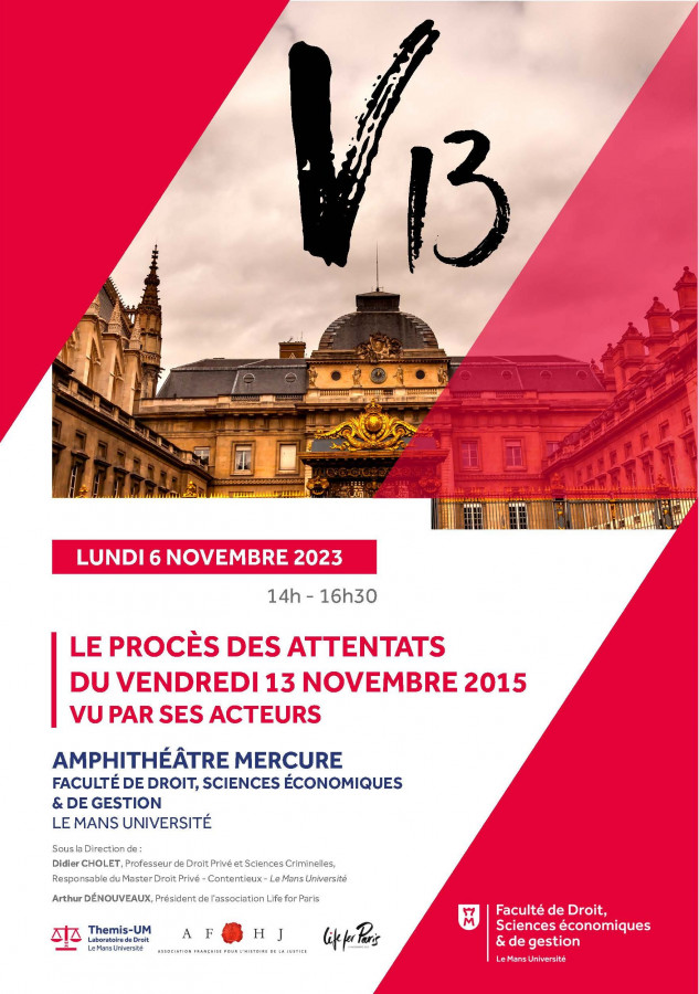 Conférence-Débat organisée par Arthur Dénouveaux et Didier Cholet, avec le Themis-UM, la faculté de droit du Mans, l’association Life for Paris et l’Association française pour l’histoire de la justice.