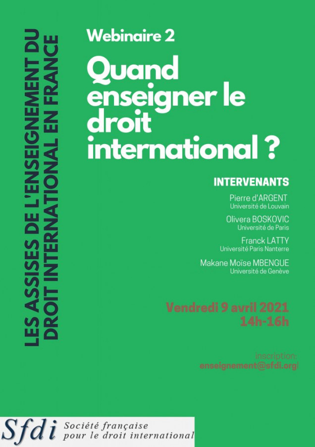 2e webinaire des Assises de l'enseignement du droit international en France, organisées par la SFDI.