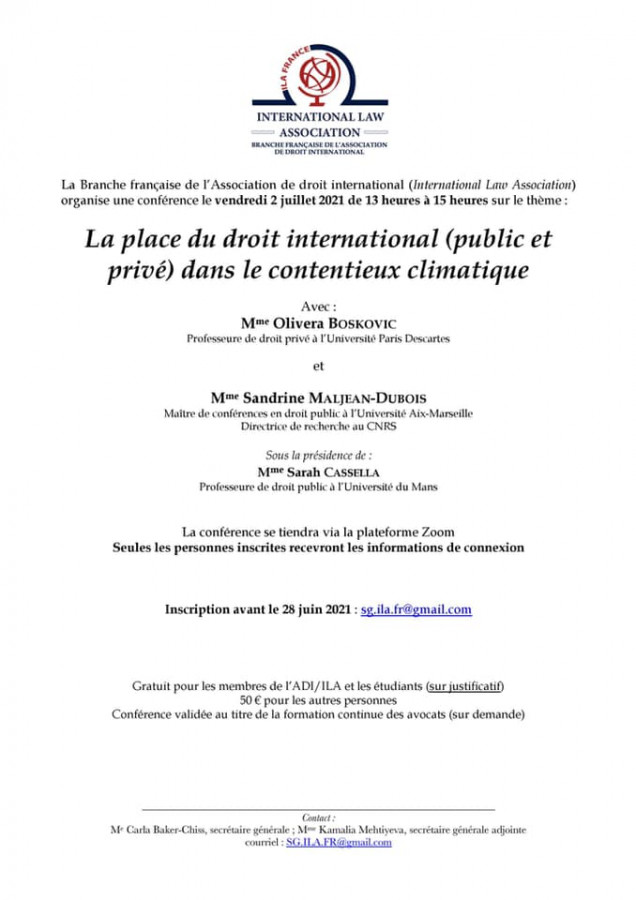 Olivera Boskovic, « La place du droit international (public et privé) dans le contentieux climatique », le 02 juillet 2021