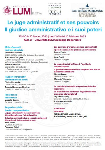 Organisée par l'Université LUM Italie, l'Université Franco-Italienne et Paris 1 Panthéon Sorbonne - Ecole de droit de la Sorbonne