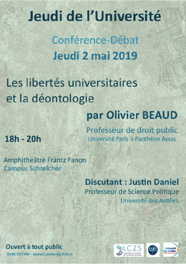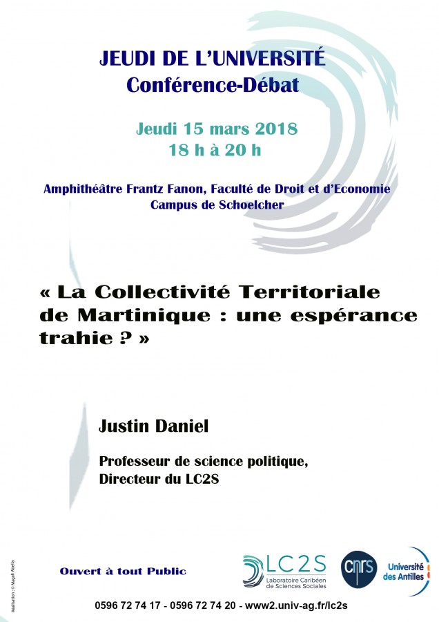 Organisée par l’Université des Antilles, LC2S dans le cadre des « Jeudis de l'Université »