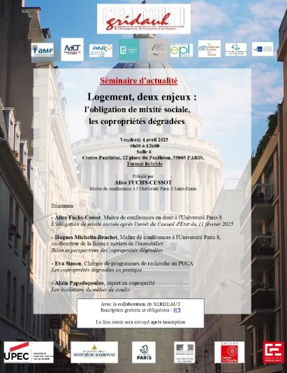 Séminaire d'actualité organisé par le GRIDAUH, Université Paris 1 Panthéon Sorbonne et l’UPEC