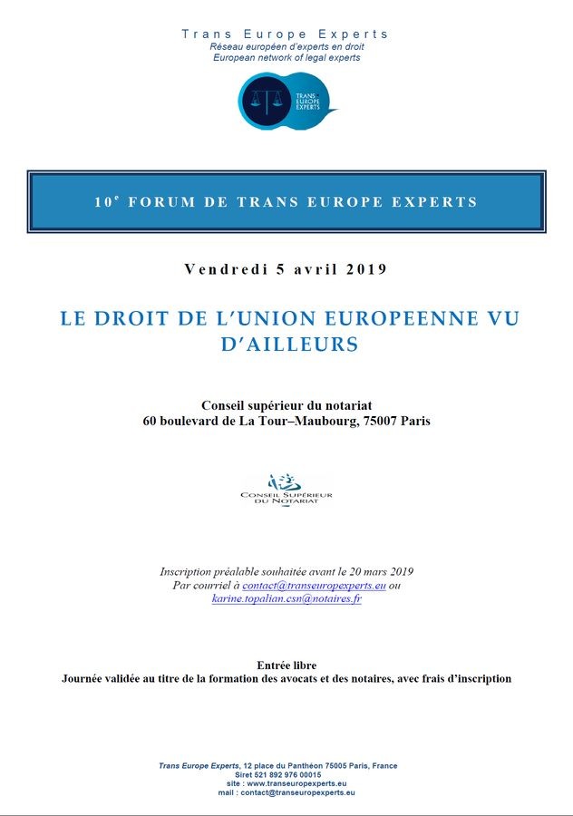 Dixième forum annuel de l’association Trans Europe Expert organisé par Fabienne Jault-Seseke, DANTE et Sophie Robin-Olivier, IREDIES