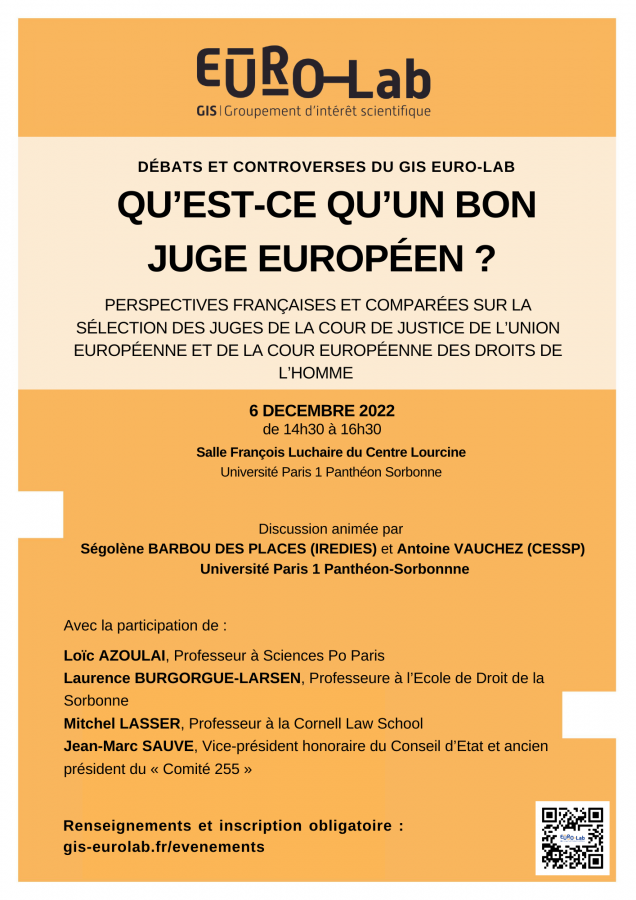 Organisé par le GIS Euro-Lab dans le cadre du cycle "Débats et Controverses", coordonné par Ségolène Barbou des Places et Antoine Vauchez, Université Paris 1 Panthéon-Sorbonne
