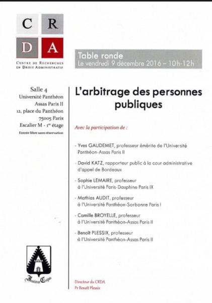 Sophie Lemaire, « L'arbitrage des personnes publiques », le 09 décembre 2016