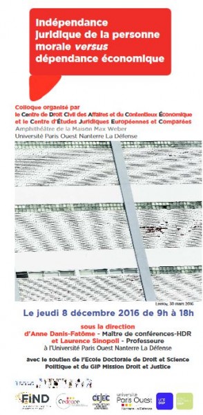 Elsa Peskine, « Indépendance juridique de la personne morale versus dépendance économique », le 08 décembre 2016