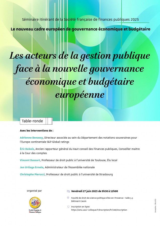 Table ronde organisée par la SFFP dans le cadre du Séminaire itinérant 2025 "Le nouveau cadre européen de gouvernance économique et budgétaire" sous la direction scientifique de Christophe Pierucci, Professeur de droit public à l’Université de Strasbourg