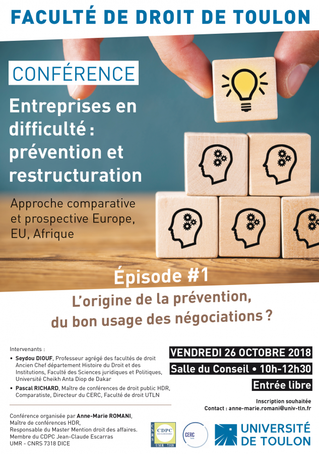 Organisée par Anne-Marie Romani, Maître de conférences HDR, Responsable du Master Mention droit des affaires, Membre du CDPC Jean-Claude Escarras UMR - CNRS 7318 DICE