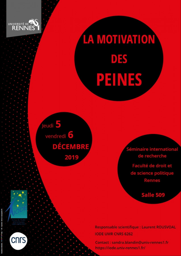 Laurent Rousvoal, « La motivation de la peine prononcée. Analyse de l’évolution en cours du droit français », Séminaire international de recherche "La motivation des peines", Rennes, 5-6 décembre 2019, Rennes, le 05 décembre 2019