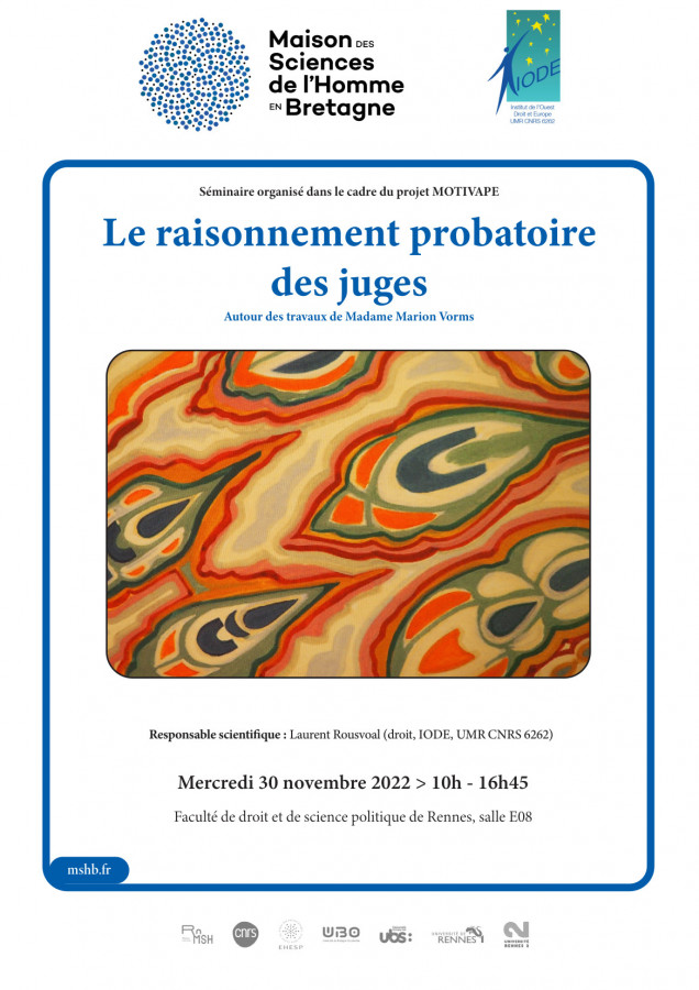 Organisé sous la responsable scientifique de Laurent Rousvoal, Maître de conférences en droit privé et sciences criminelles, Université de Rennes 1, IODE (UMR CNRS 6262)