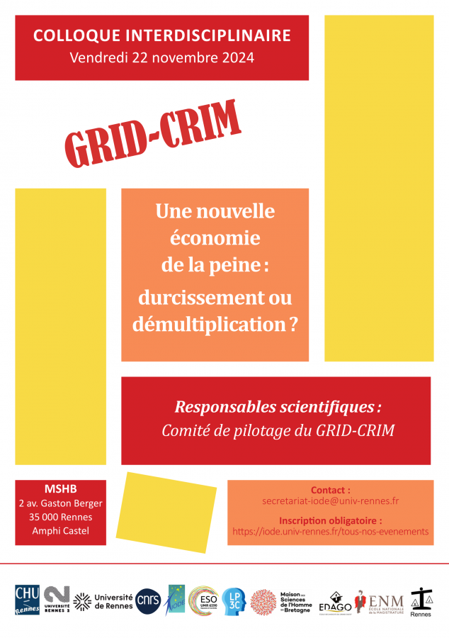 Cette journée d’étude interdisciplinaire organisée par le GRID-CRIM aura lieu le vendredi 22 novembre 2024 à Rennes.
