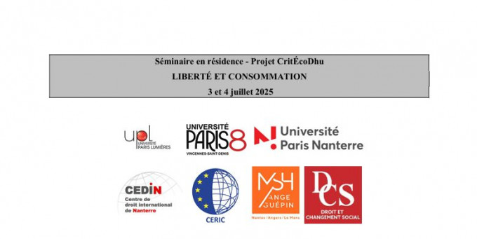 Séminaire en résidence - Projet CritÉcoDhu Liberté et Consommation organisé par le DCS, la MSH Ange Guépin, Nantes Université avec l'Université Paris 8, Paris Lumières, Nanterre, le CEDIN et le CERIC