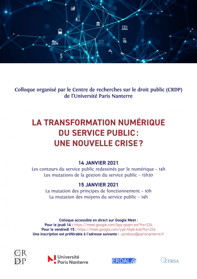 Colloque organisé par le Centre de recherches sur le droit public (CRDP), Université Paris-Nanterre, sous la responsabilité scientifique d'Arnaud Sée, Lucie Cluzel-Métayer et Catherine Prébissy-Schnall.