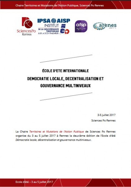 Organisée par Sciences Po Rennes, avec le labo Arènes/CRAPE (UMR6051), l’Institut de la Gouvernance territoriale et décentralisation et la revue Pouvoirs locaux, l’Assoc° Française de Science Politique et l’Assoc° Internationale de Science Politique
