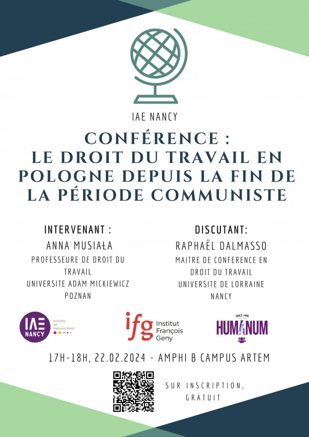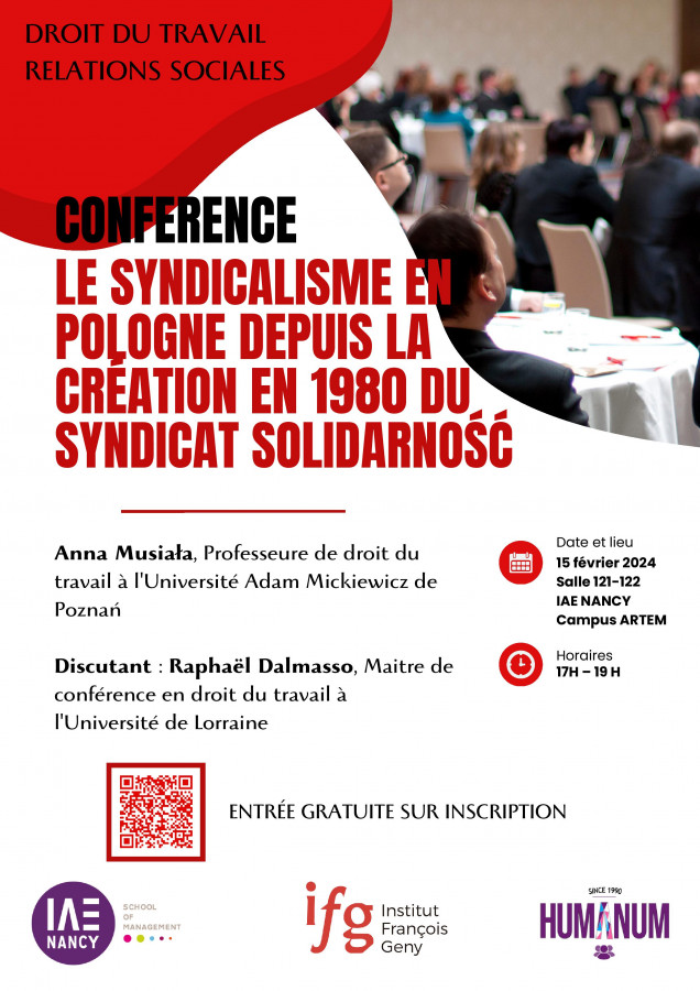 Conférence organisée par l'IFG, et l'IAE Nancy School of Management avec le soutien de l'Association Humanum et des étudiants de Master 1 et 2 en Ressources Humaines, Université de Lorraine sous la direction scientifique de Raphael Dalmasso, Maître de conférences HDR à l'Université de Lorraine