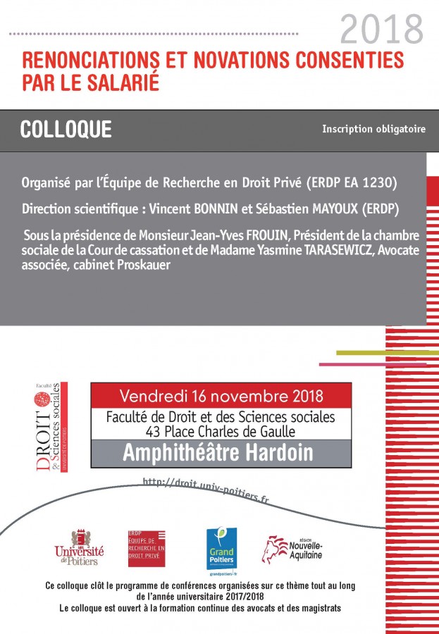 Organisé par l’École du Centre-ouest des avocats et l’Université de Poitiers sous la direction scientifique de Vincent Bonnin, Maîtres de conférences ; Jean-Philippe Lhernould, Professeur et Sébastien Mayoux, Maître de conférences
