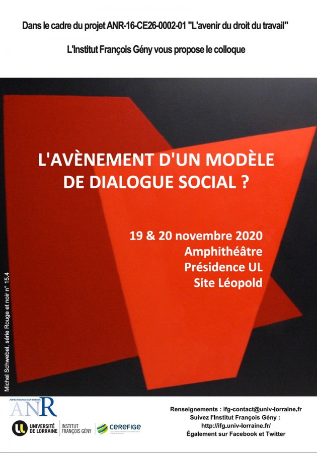 Organisé pour l'Inst. François Geny, Université de Lorraine en partenariat avec la DREETS Grand Est et le CEREFIGE, avec l'IAE Nancy School of management et de la Faculté de Droit, Sc. éco. et Gestion de Nancy par Frédéric Géa et Anne Stévenot