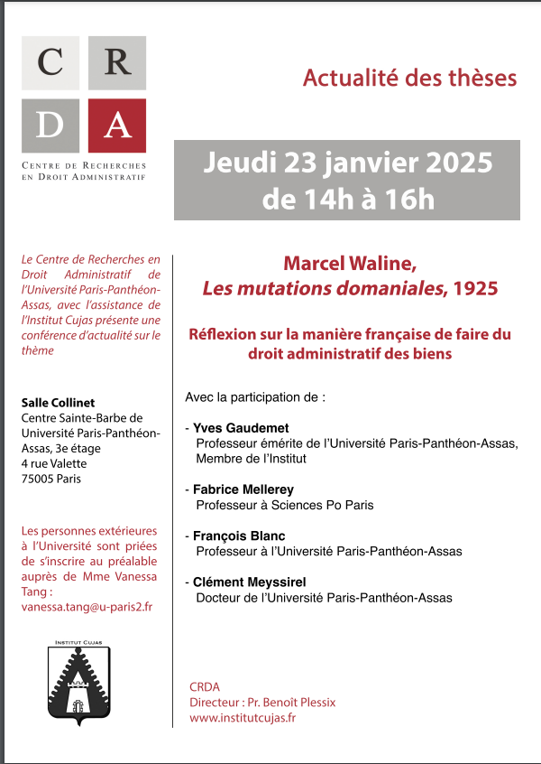 Conférence organisée par le Centre de Recherches en Droit Administratif de l'Université Paris-Panthéon-Assas, avec l'assistance de l'institut Cujas dans le cadre de l'actualité des thèses