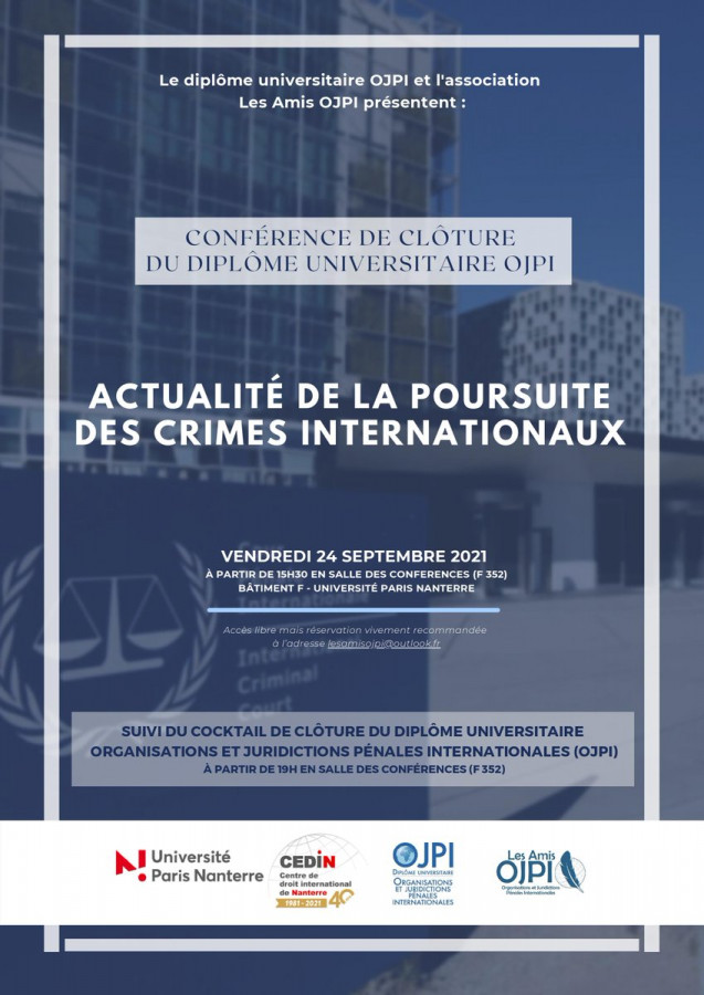Colloque organisé par le CEDIN, Université Paris-Nanterre, dans le cadre du Diplôme universitaire Organisations et juridictions pénales internationales (OJPI).