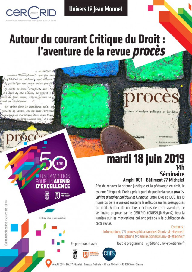 Evelyne Serverin, « Autour du courant Critique du Droit : l’aventure de la revue procès », le 18 juin 2019