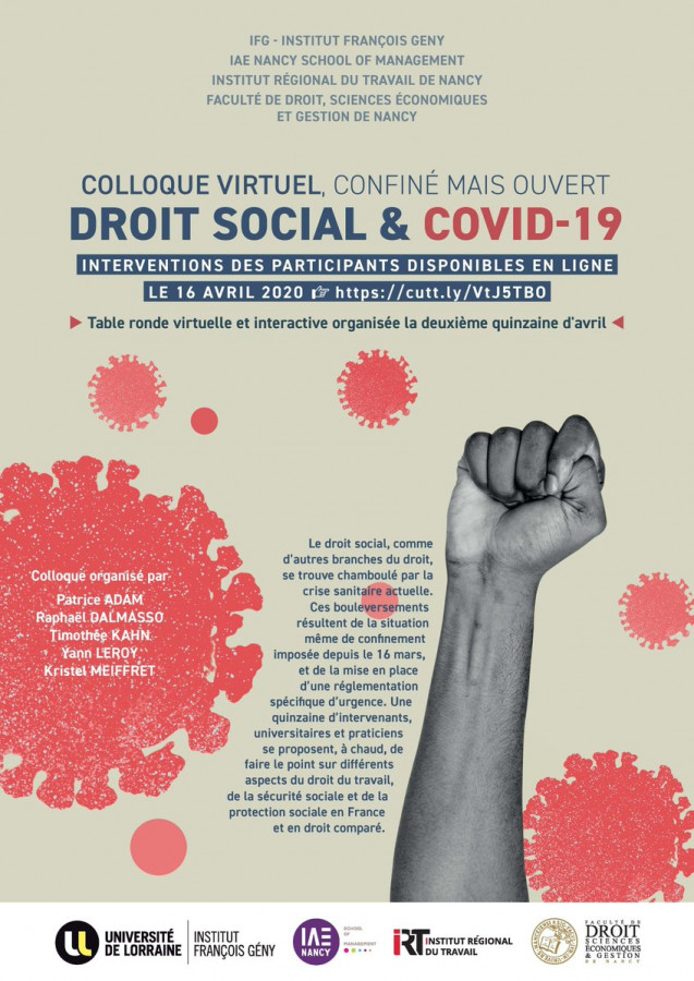 Table-ronde virtuelle et interactive proposée avec le soutien de l'Institut François Gény, de l'IAE Nancy School of Management, de l'Institut Régional du Travail de Nancy et de la Faculté de Droit, Sciences économiques et Gestion de Nancy.