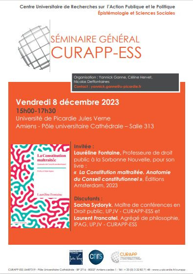 Organisé par l'ISJPS, Université Paris 1 Panthéon-Sorbonne sous la direction scientifique de Dominique Rousseau, Professeur émérite en droit public ; Sandra Laugier, Professeure de philosophie et Xavier Philippe, Professeur de droit public