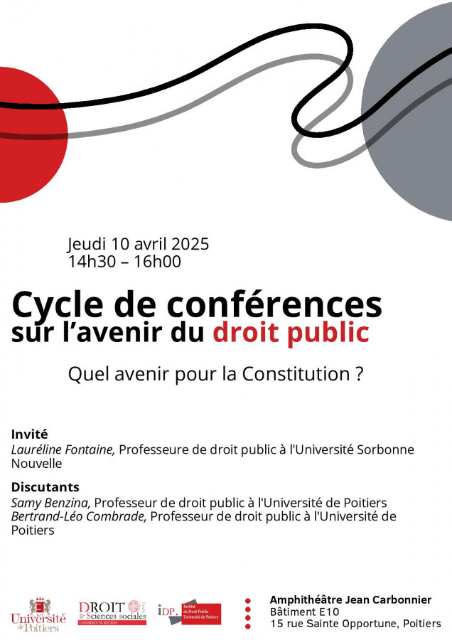Conférence organisée par l'Institut de droit public - IDP, Faculté de droit, Université de Poitiers dans le cadre du Cycle de sur l'avenir du droit public sous la direction scientifique de Mme Eve Dubus et de M. Lilian Dailly, Maîtres de conférences en droit public à l'Université de Poitiers
