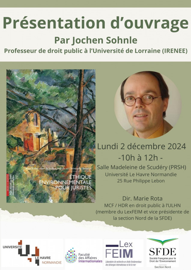 Colloque organisé par le LexFEIM, Faculté des Affaires internationales de l'Université Le Havre-Normandie, l'IRENEE, Université de Lorraine avec la Fondation Anthony Mainguené et la SFDE sous la direction scientifique de Marie-Pierre Camproux-Duffrène, Pr. de droit privé, Université de Strasbourg ; Olivier Clerc, Pr. de droit public, Université d’Artois ; Nicolas Guillet, MCF en droit public, Université Le Havre Normandie et Jochen Sohnle, Pr. de droit public, Université de Lorraine