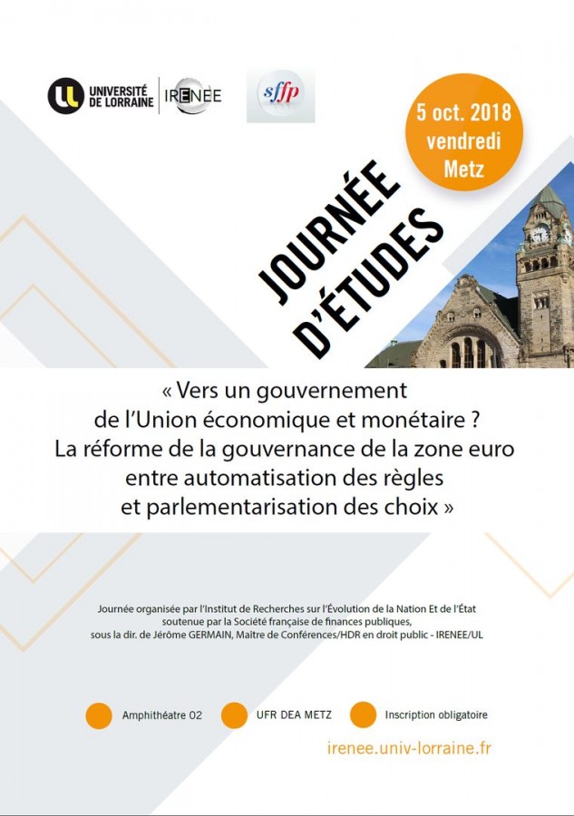 Organisé par l’IRENEE, Université de Lorraine en partenariat avec la Société Française de Finances Publiques SFFP, sous la direction de Katia Blairon, Maître de conférences HDR de droit public IRENEE / UL