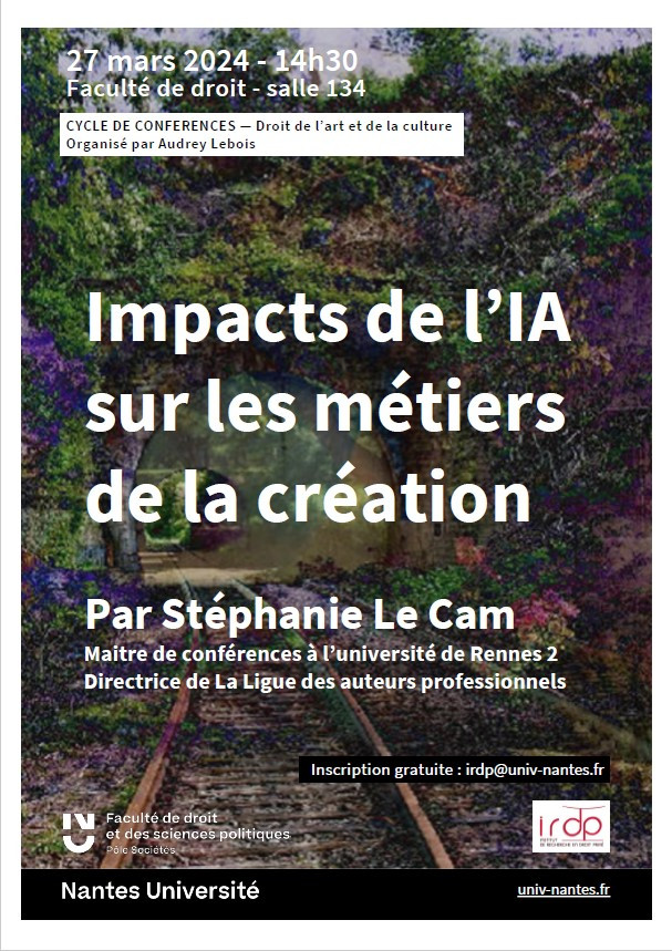 Conférence organisée par l'IRDP, Nantes Université dans le cadre du cycle de conférences "Droit de l'art et de la culture" sous la direction scientifique de Audrey Lebois