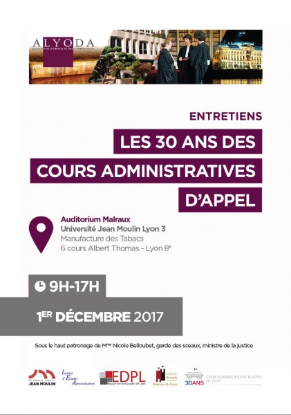 Colloque organisé par l'Institut d'études administratives (Université Jean Moulin Lyon 3), le Centre Michel de l'Hospital (Université Clermont Auvergne) et ALYODA.
