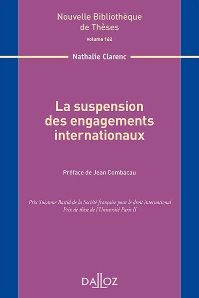 Nathalie Clarenc, Nathalie Clarenc Bicudo, La suspension des engagements internationaux, Dalloz, 2017, Nouvelle Bibliothèque de Thèses, 550 p.