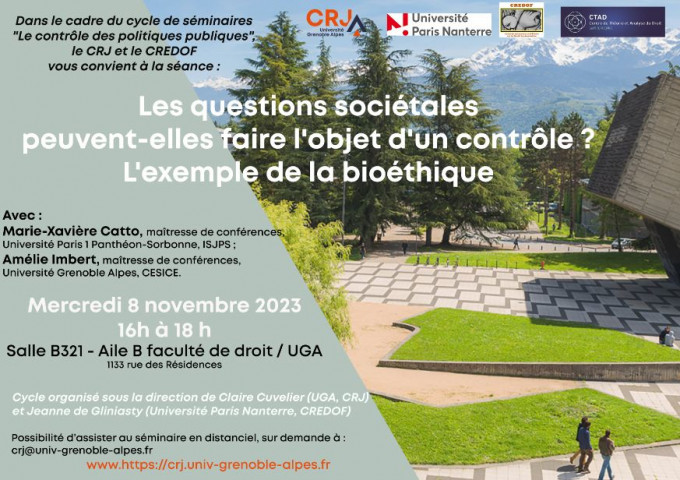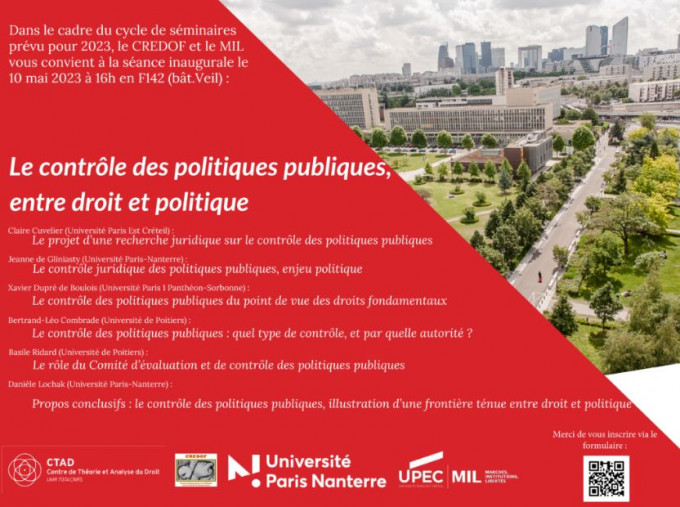 2e séminaire du cycle sur "Le contrôle des politiques publiques" organisé par le CRJ, le CTAD et le CREDOF, Universités Grenoble Alpes et Paris-Nanterre sous la direction de Claire Cuvelier, CRJ et Jeanne de Gliniasty, CREDOF, Université de Nanterre