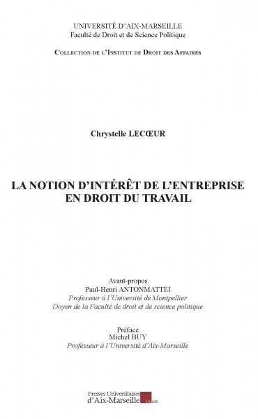 L'intérêt de l’entreprise est une notion incontournable suscitant de vifs débats doctrinaux. Qu’est-ce que l’intérêt de l’entreprise ? Comment est-il appréhendé par les acteurs du droit ? Quel est son périmètre d’application ? Telles sont les questions auxquelles tente de répondre l’étude. Riche d’enseignements, l’approche doctrinale ne permet pas d’aboutir à un consensus. Pure création de la jurisprudence, la notion est employée afin de contrôler les décisions et les comportements des parties à la relation de travail. Bien que la référence à l’intérêt de l’entreprise soit explicite en ce qui concerne le fondement ou les conditions d’exercice du pouvoir patronal, elle permet aussi d’encadrer le comportement et les décisions prises par le salarié. L’ensemble des acteurs concourant au fonctionnement de l’entreprise doit ainsi agir dans le sens de cet intérêt. À cet égard, l’appréhension de la notion se veut plurielle et fonctionnelle. L’adhésion des salariés, ainsi que des représentants du personnel au projet entrepreneurial suppose leur participation à la prise de décision. Malgré les réformes successives, il faut reconnaître que la participation des salariés à la gestion de l’entreprise demeure très limitée. Cela devrait sans doute évoluer avec l’émergence du concept RSE qui, au-delà d’apparaître comme un nouveau mode de régulation des rapports de travail, tend à promouvoir une responsabilisation des acteurs. L’évolution des rapports sociaux, induit par l’internationalisation des échanges, nécessite des réajustements. L'objectif est alors de parvenir à maintenir un équilibre entre la protection des salariés et de leur emploi et la pérennisation des entreprises.