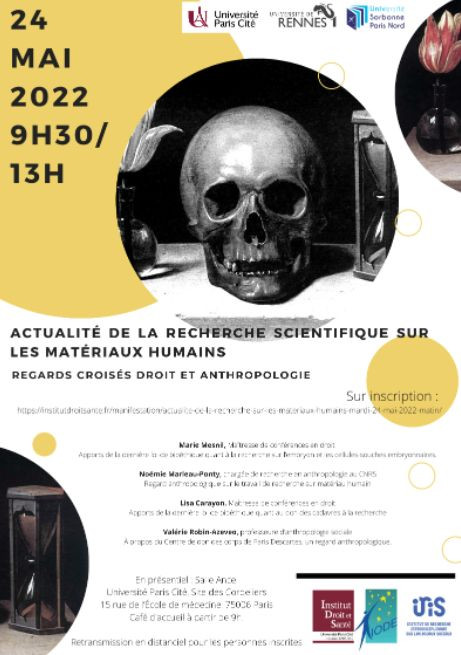 Marie Mesnil, « Apports de la dernière loi de bioéthique quant à la recherche sur l'embryon et les cellules-souches embryonnaires », Actualité de la recherche scientifique sur les matériaux humains. Regards croisés droit et anthropologie, Paris, le 24 mai 2022