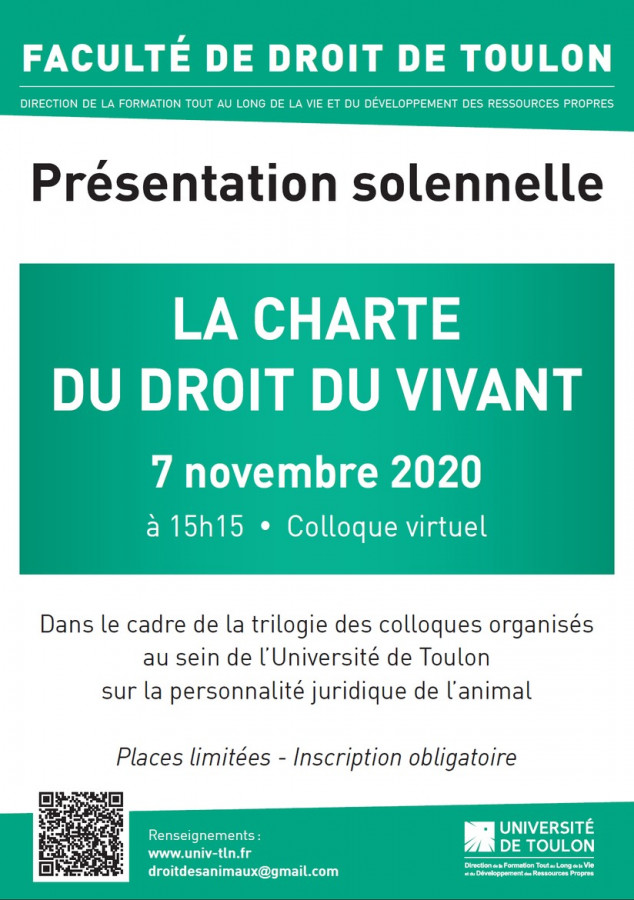 Charte proclamée dans le cadre de la trilogie des colloques organisés au sein de l’Université de Toulon sur la personnalité juridique de l’animal.