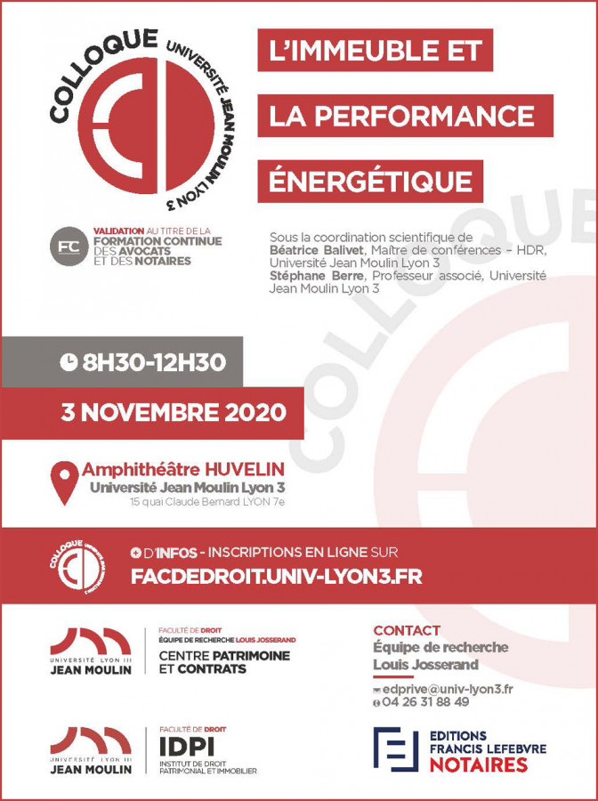 Organisé sous la direction scientifique de Virginie Pezzella, MCF, Centre Patrimoine et Contrats, Équipe de recherche Louis Josserand, Directrice adjointe de l’Institut de droit patrimonial et immobilier, Université Jean Moulin Lyon 3